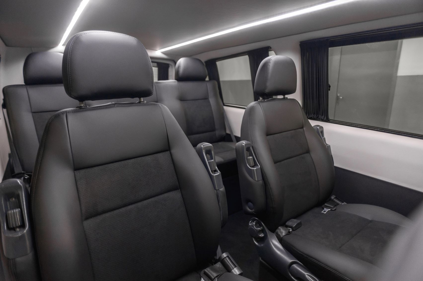 Our Sprinter vans seat up to 14 passengers with room for luggage, golf clubs, or event equipment. High-top ceilings let passengers stand and move freely during longer trips, and leather seating with individual climate controls keeps everyone comfortable. Unlike standard rideshare vans, our vehicles are professionally maintained and detailed before each trip.